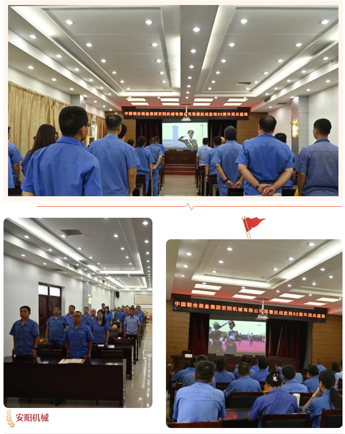 為深入學(xué)習(xí)貫徹習(xí)近平新時(shí)代中國(guó)特色社會(huì)主義思想,扎實(shí)開(kāi)展愛(ài)國(guó)主義和革命傳統(tǒng)教育,9月3日上午,安陽(yáng)機(jī)械黨委組織班子成員、各支部書(shū)記及50余名在職黨員,集中觀(guān)看“紀(jì)念中國(guó)人民抗日戰(zhàn)爭(zhēng)暨世界反法西斯戰(zhàn)爭(zhēng)勝利80周年閱兵式”直播,共同見(jiàn)證祖國(guó)強(qiáng)軍風(fēng)采,汲取奮進(jìn)力量。